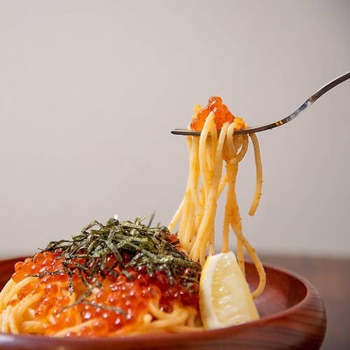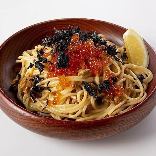 壁の穴の人気メニュー「明太子スパゲッティ」に、旬の秋鮭・舞茸・いくらを添えた豪華な一皿や、